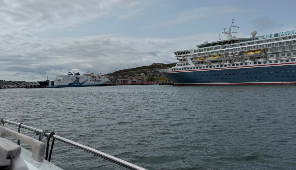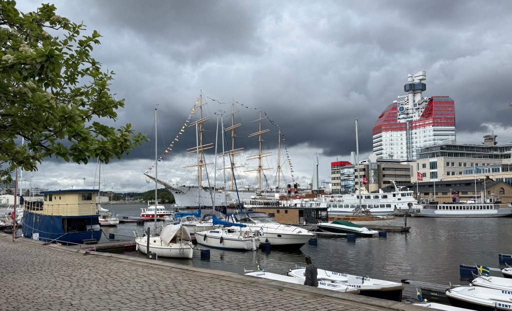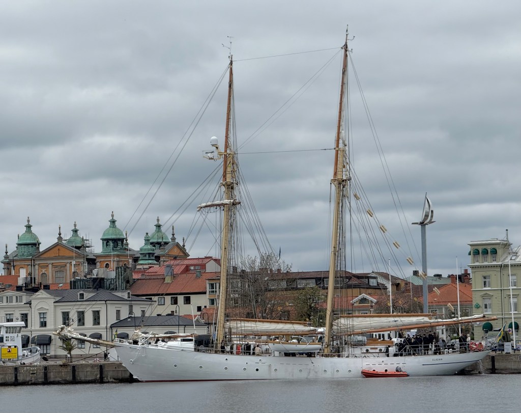 Svenska marinens övningsfartyg Gladan, systerfartyg till Falken, ligger här. Det är en skonert (skonare med två eller fler master) byggd 1946.