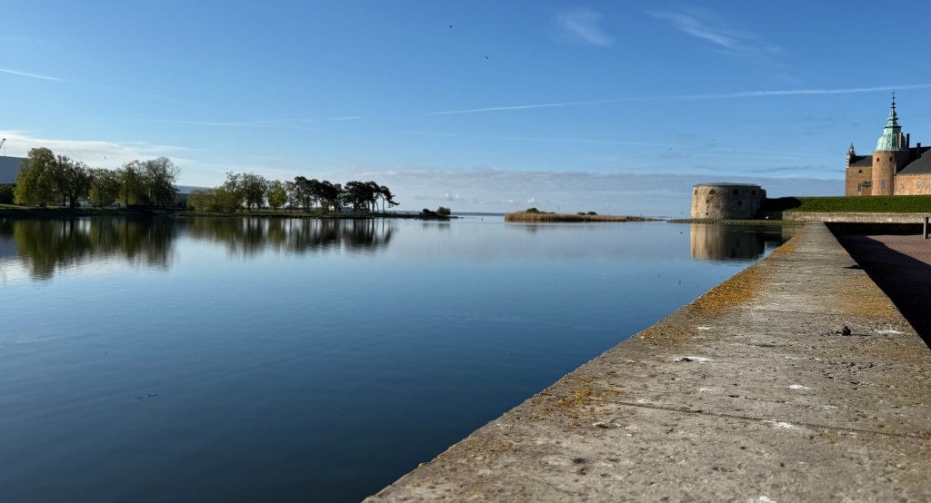 Morgonpromenaden företogs naturligtvis vid den vackra parken, förbi slottet och vidare till Stensö. Kunde inte motstå en bild på Kalmar Nyckel i solskenet.