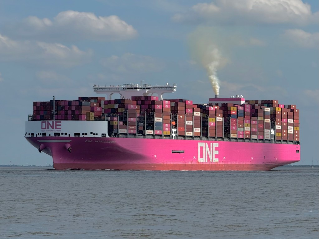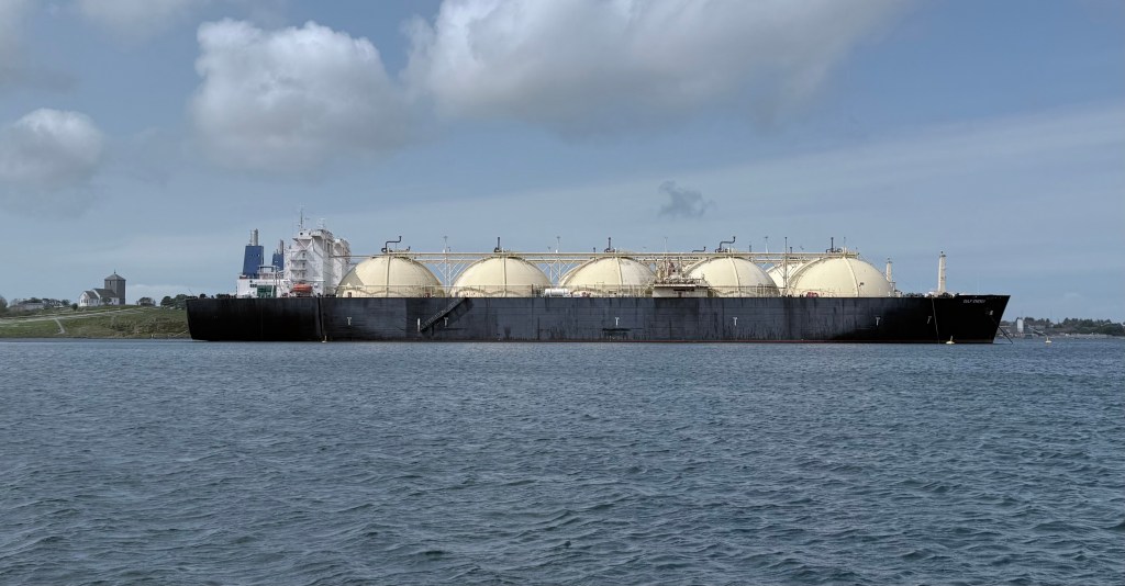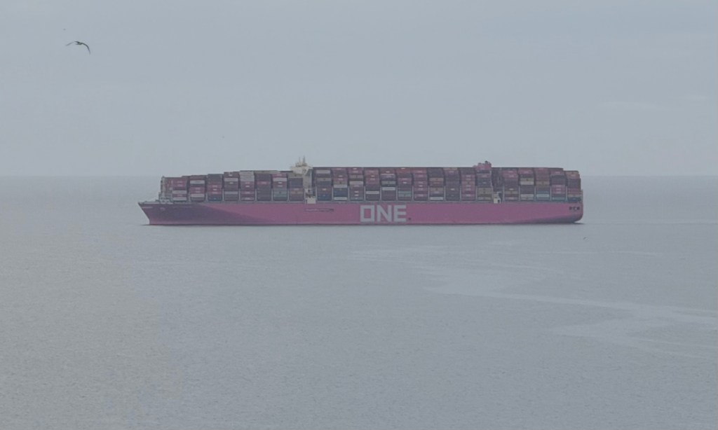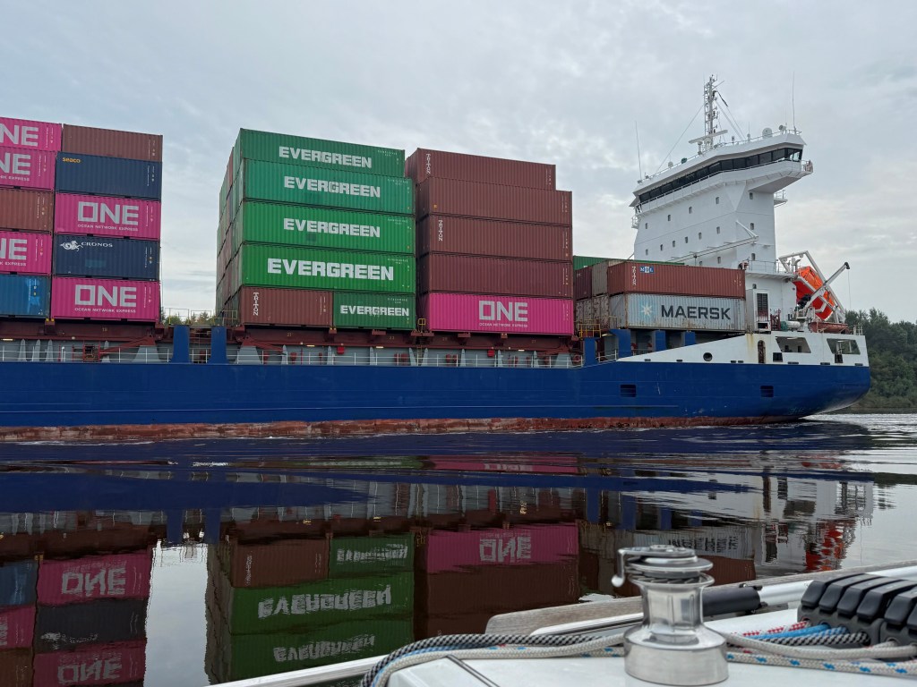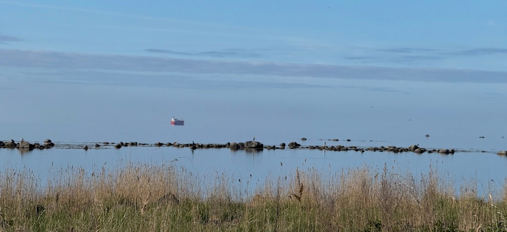 … även i den södra delen av Kalmar sund. Fraktfartyget stävar mot gränsen mellan himmel och hav…