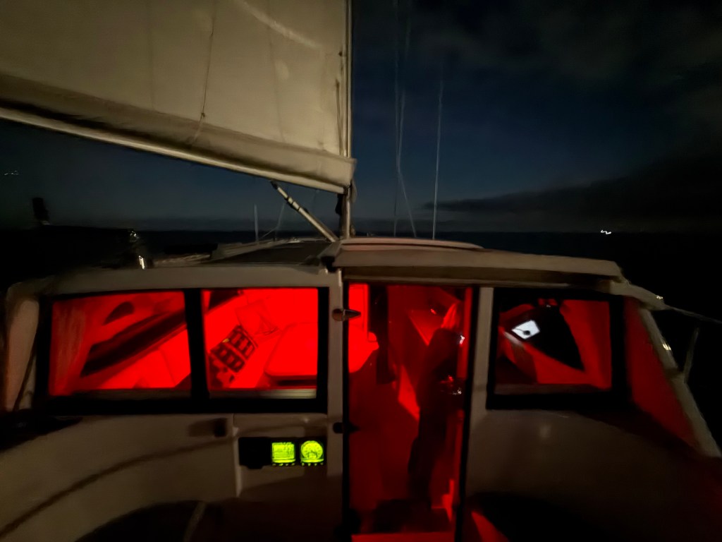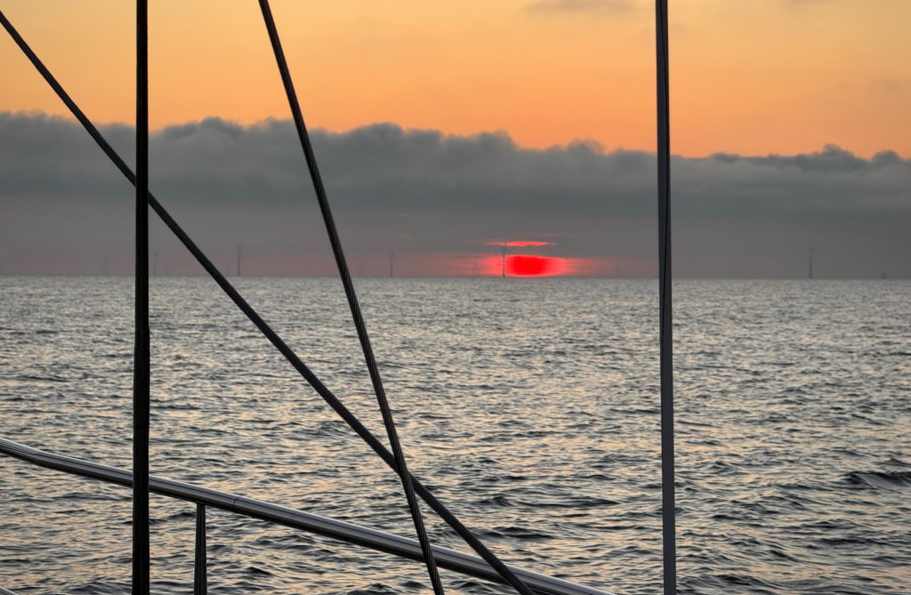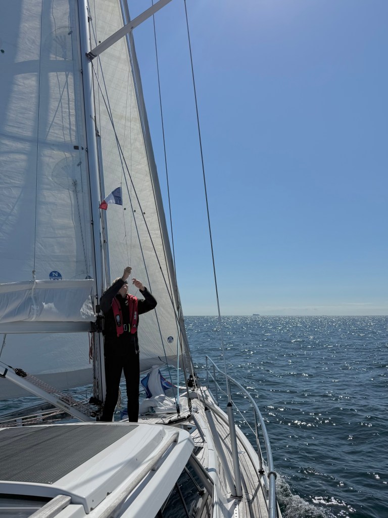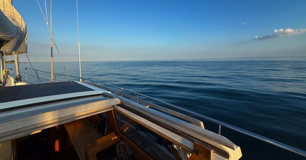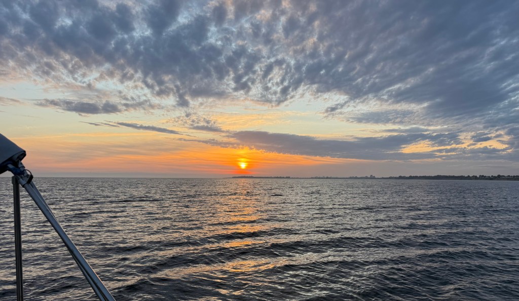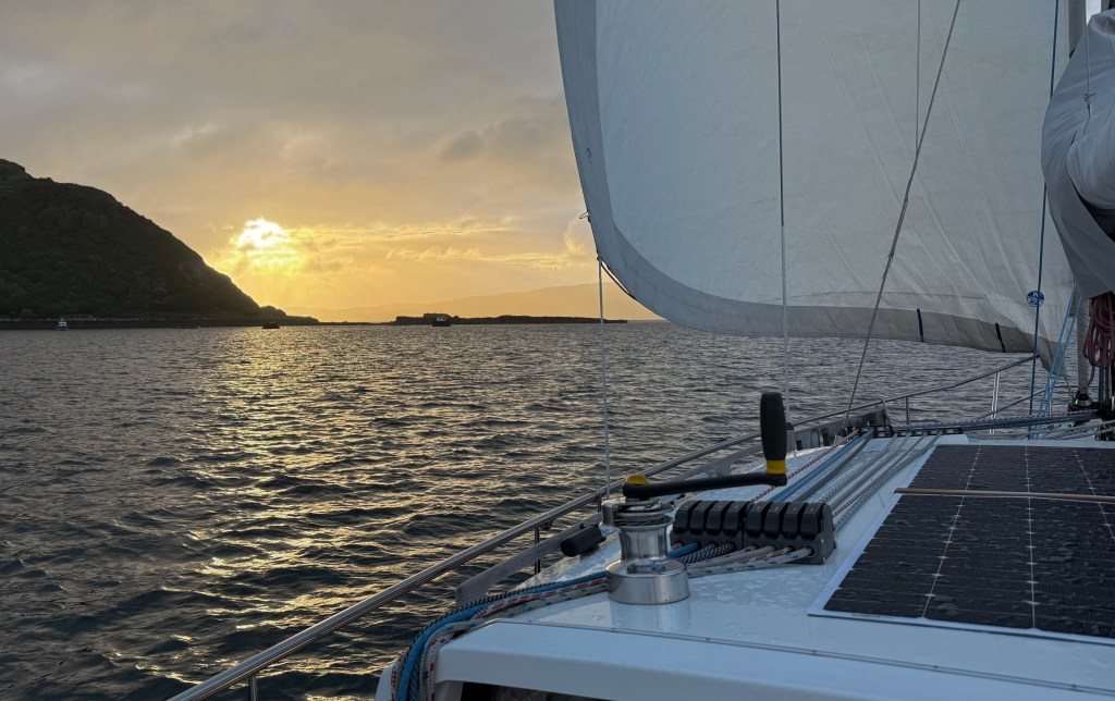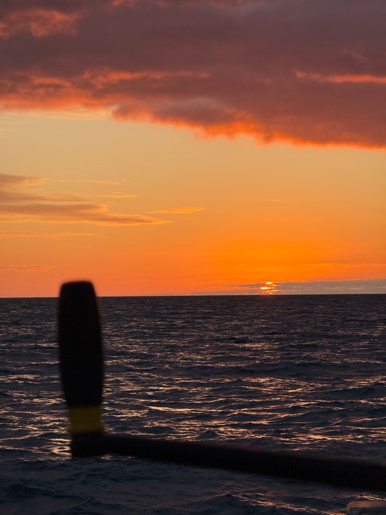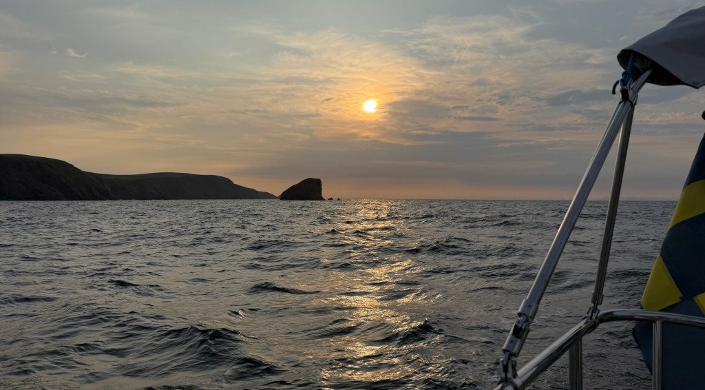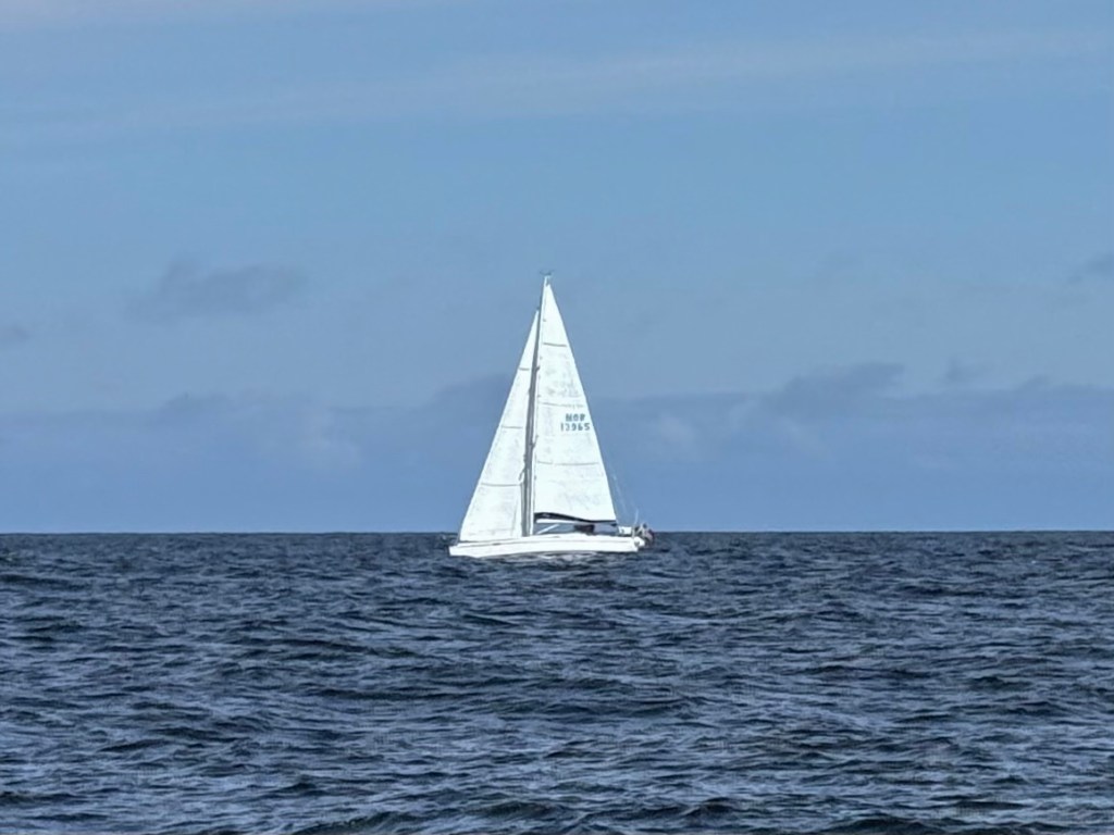 Vi seglade på öppet hav, kortaste spåret, och hoppades att dyningen inte skulle stöka till det i den modesta undanvinden. Allt gick över förväntan och vindprognosen stämde inte med verkligheten, vilket vi tacksamt noterade…