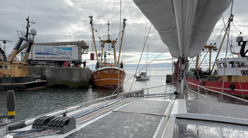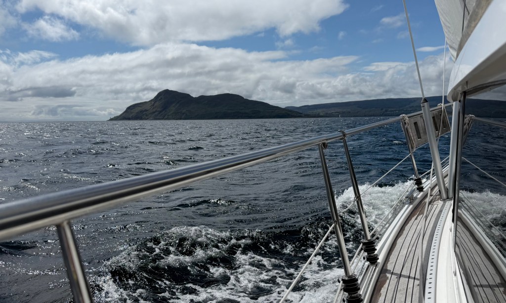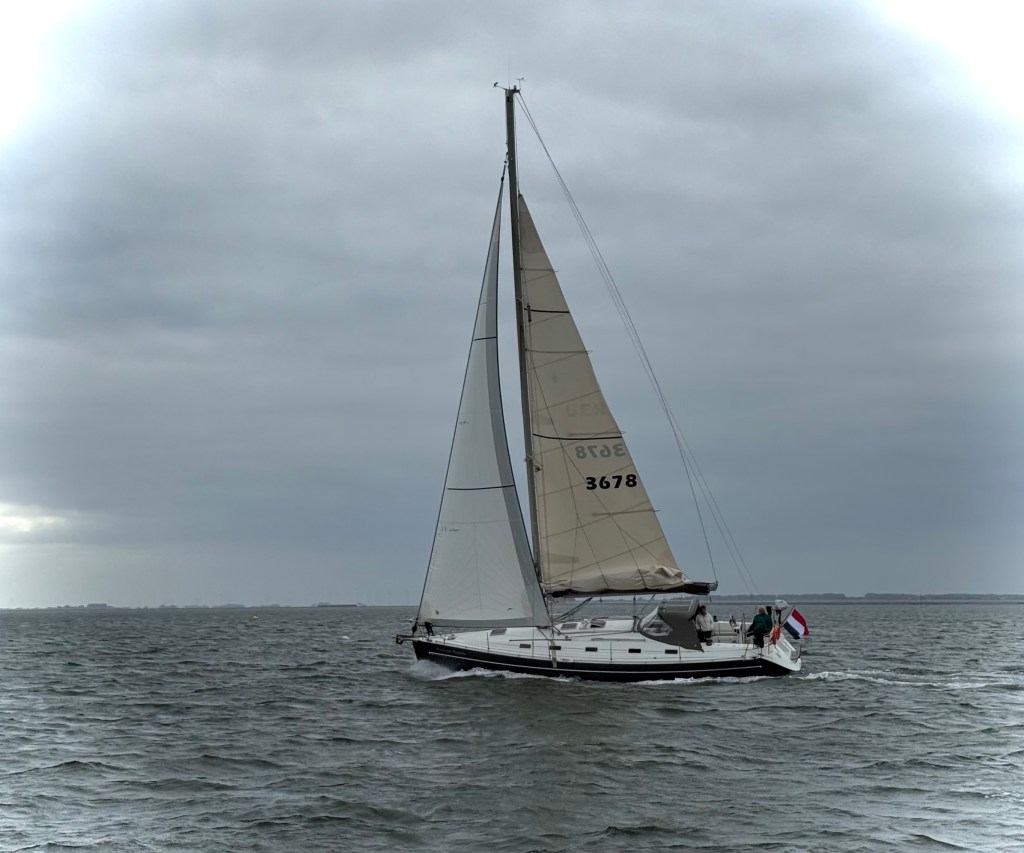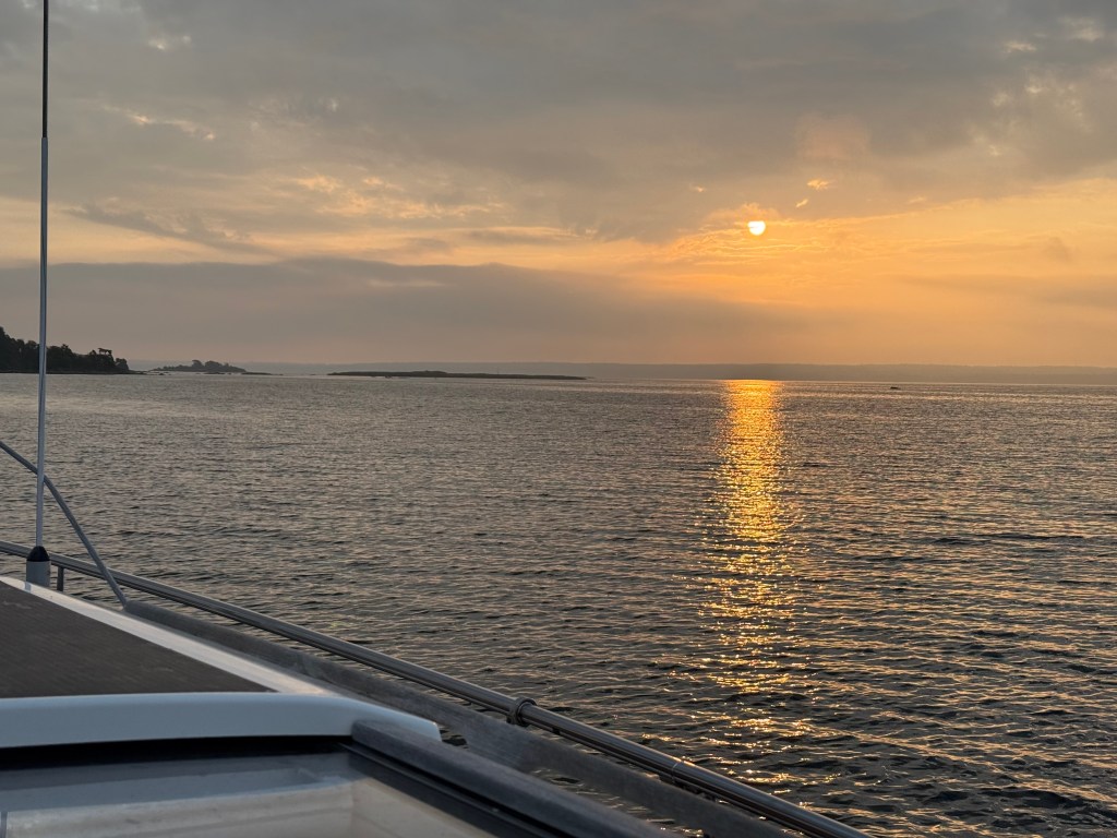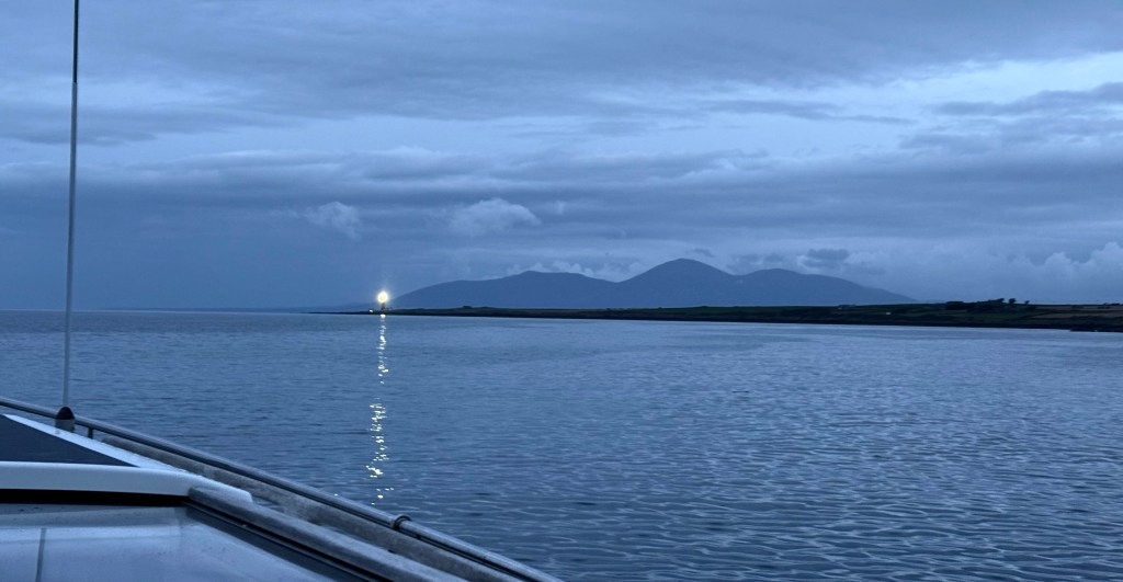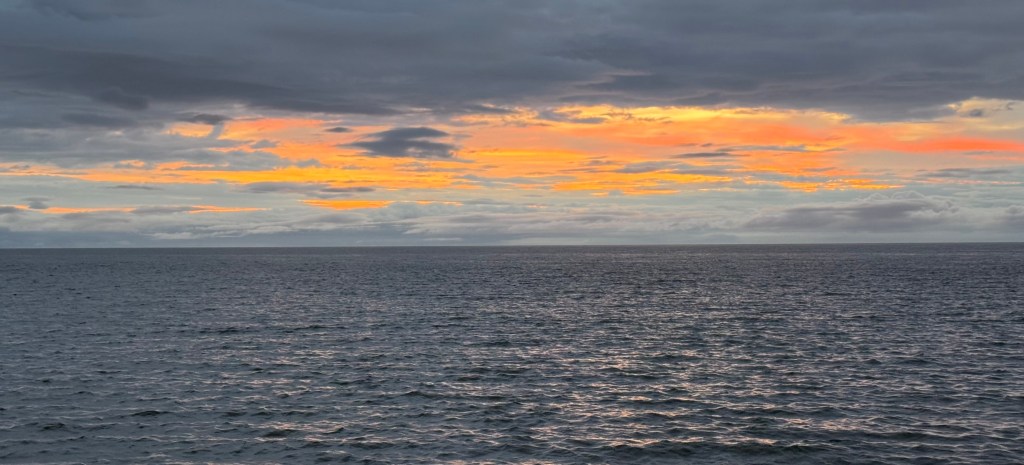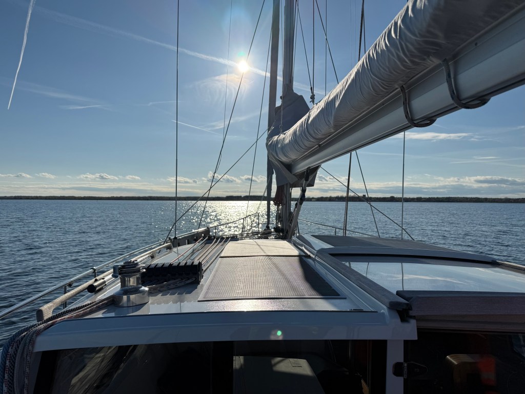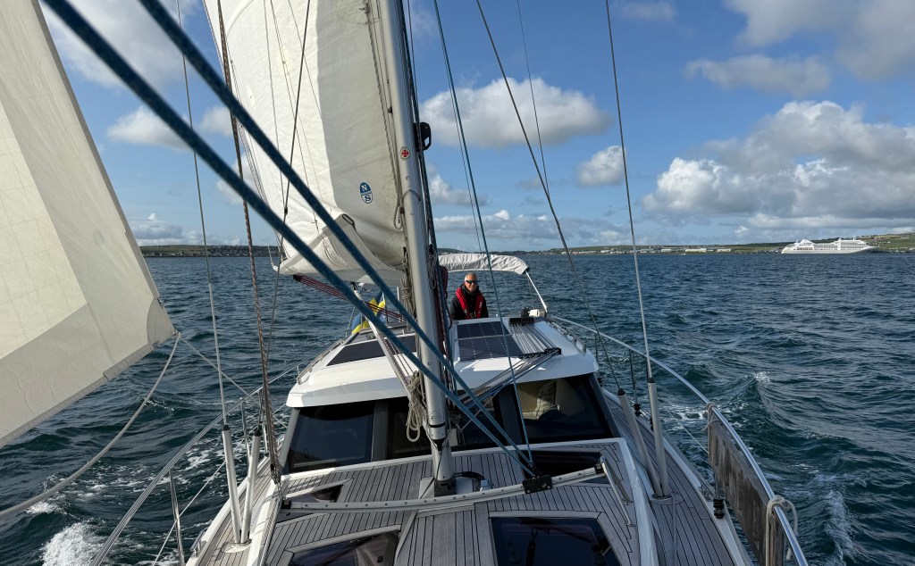 Vi seglade på öppet hav, kortaste spåret, och hoppades att dyningen inte skulle stöka till det i den modesta undanvinden. Allt gick över förväntan och vindprognosen stämde inte med verkligheten, vilket vi tacksamt noterade…
