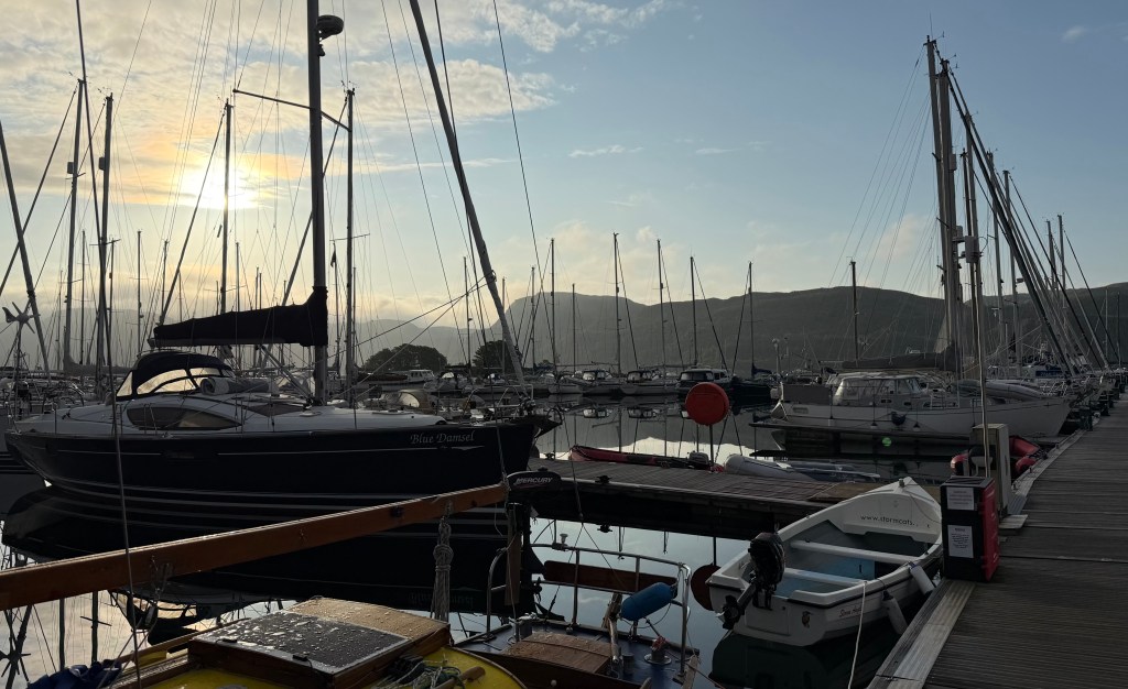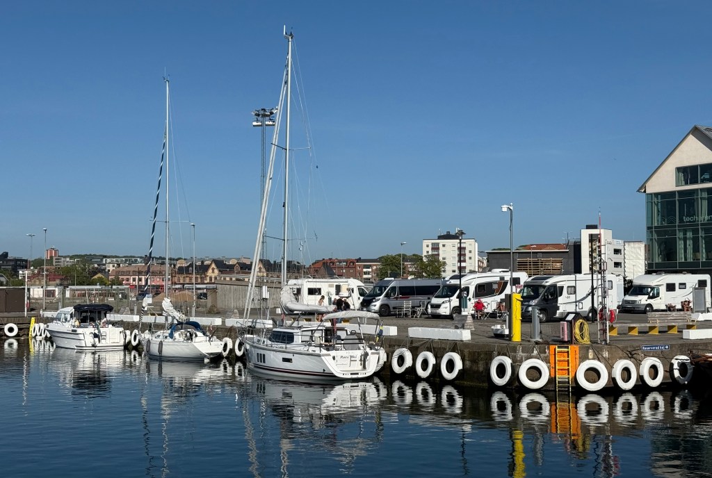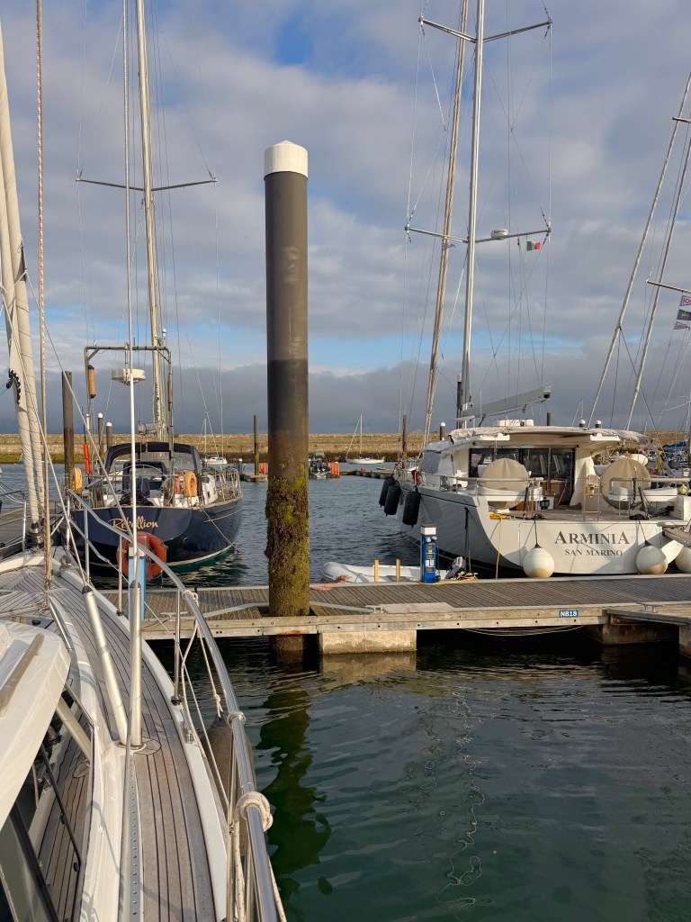 Hälsningar från en ”gratishamn” utan el och vatten… (men bra plats för vindens ökande verkningar…)
