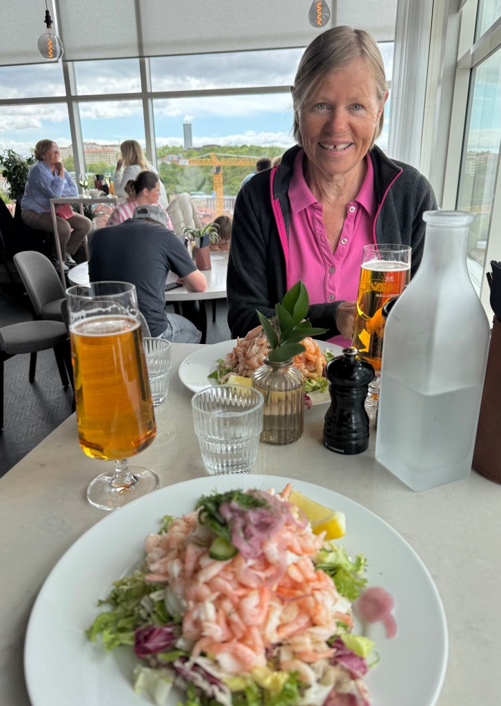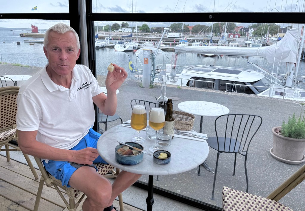 Handlade strömming, skagenröra och potatissallad i fiskbutiken. En kortare promenad innan middagen ökade smaklökarnas känslighet.