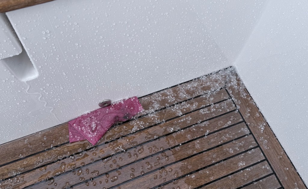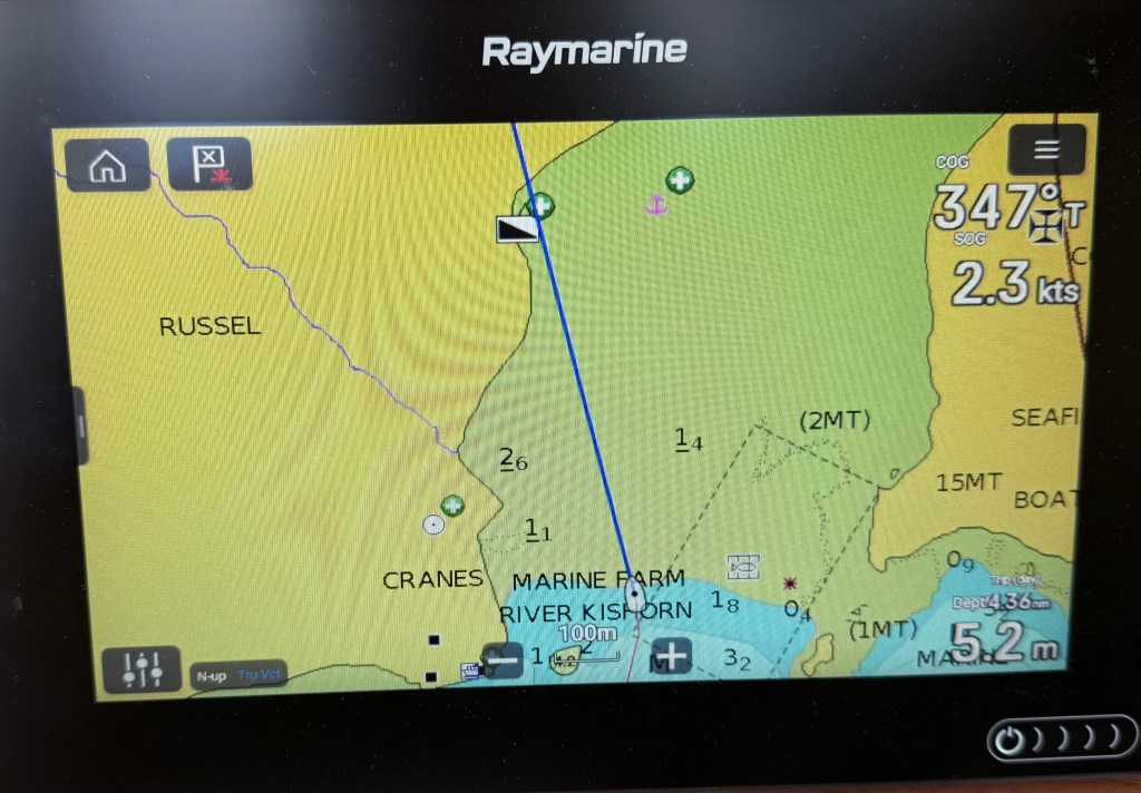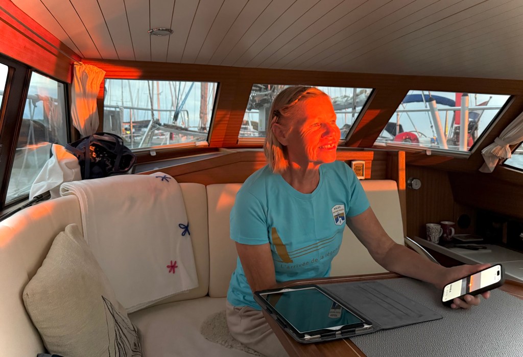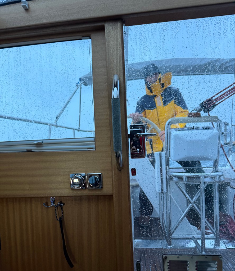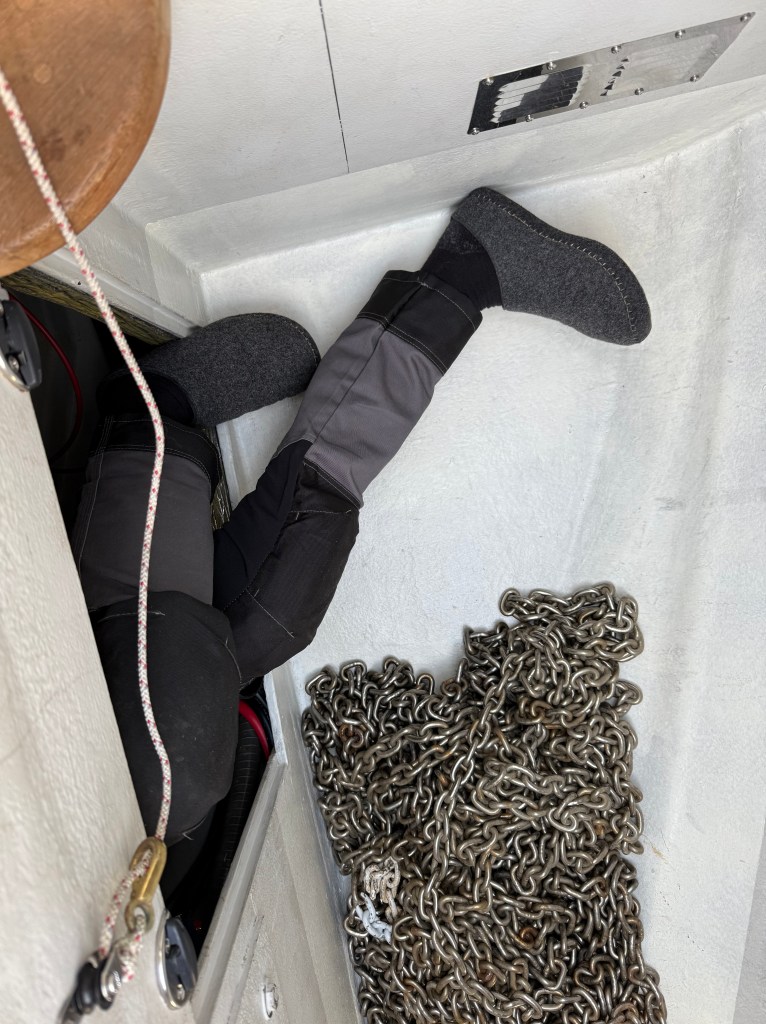 En sak som vi uppskattade mycket, var våra nyinköpta head sets (intercom). Såååå bra och enkelt att kommunicera med då Rorsman hänger i stäven och spolar av ankaret och Kibben styr och ställer med båt och ankarkätting! Kanske något att ha på sig jämt för att förstå varandra, istället för hörapparat…😊