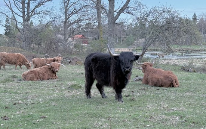 Efter maten en kvällspromenad. Träffade på ett antal Scottish Highlanderkreatur. De är bra betesdjur på fuktiga marker.