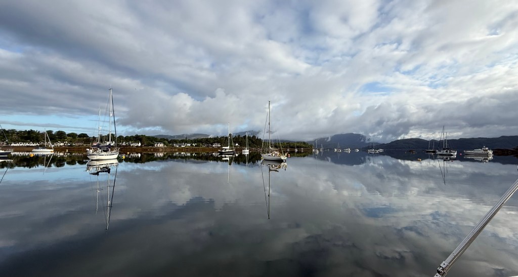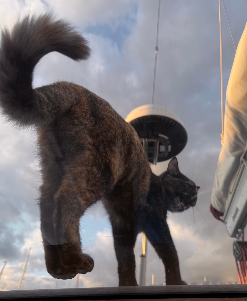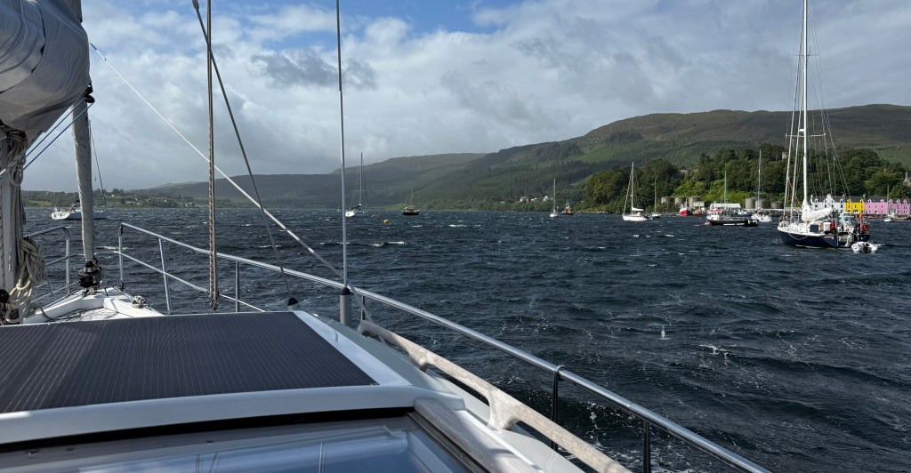 Tisdagen anlände med klar, fin luft med långa solstunder mellan bulliga moln. Dessutom frisk vind med ettriga vindbyar. Ytterligare några vändor till båten, i den kyliga morgonluften. Man slutar inte förvånas över hur mycket hon ”sväljer”, gällande allt man packat in. ”Hängbuk”? Ja, hon tillhör ju inte racingsegmentet inom segelsporten…