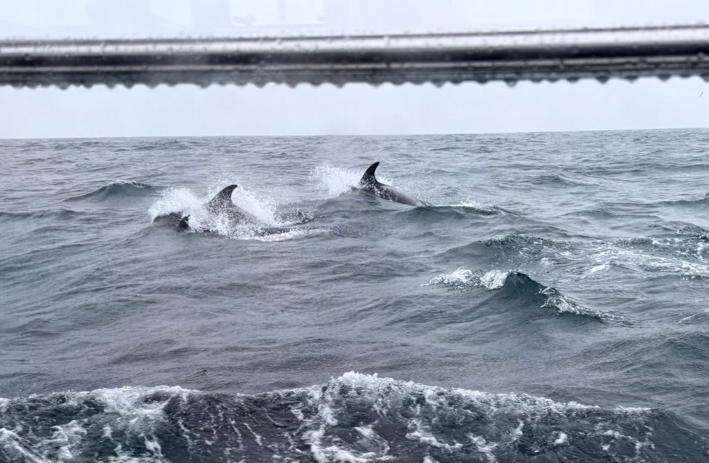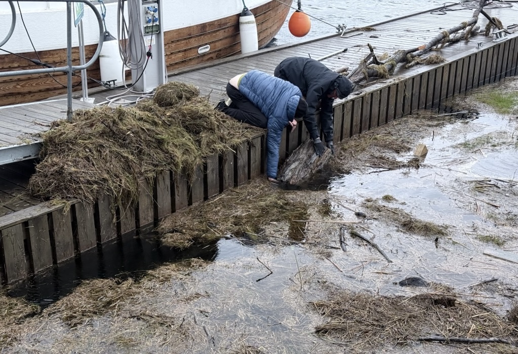 Ombord på tillsyningsmännens båt fanns tre anställda på SMHI. De skulle laga en mast som förser dem, och oss, med aktuella vinddata. Vart tog vår ”ensamtid” vägen…?