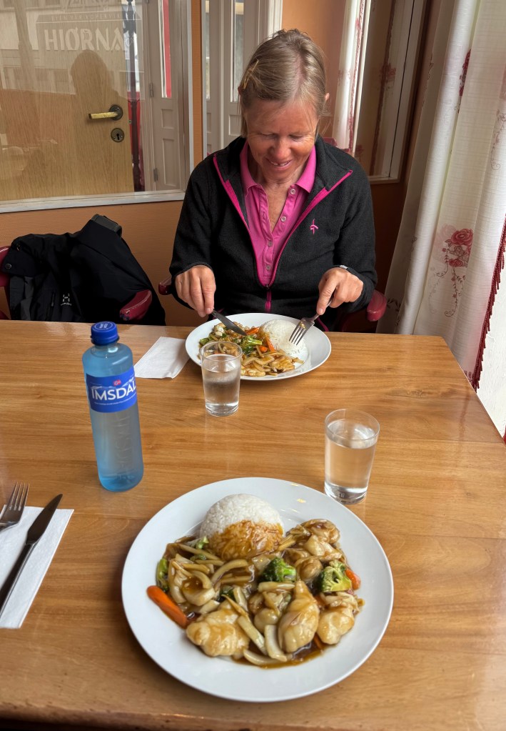 En nyinstallerad kyl/frys i kölsvinet är full med fryst god mat (-10 grader). Därför har vi möjlighet att planera var vi intar våra middagar. Ombord eller på restaurang. Dessutom inga problem med strömförsörjningen, eftersom vi kopplar in elsladden i varje hamn, nu då det är extra kyligt.