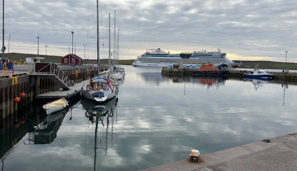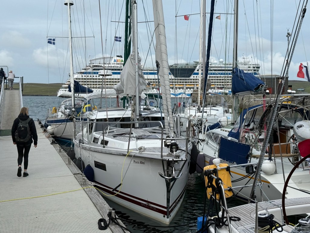 Till kvällen var vi fyra båtar från fyra olika nationer i bassängen. Panta Rhei var minstingen i gänget… Det lär inte bli så långa promenader här då ytorna på de tre öarna är små och just nu ska man inte gå överallt på grund av fåglarnas häckning.