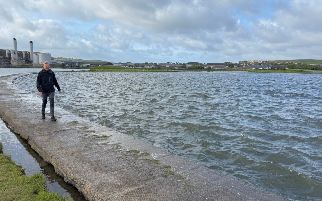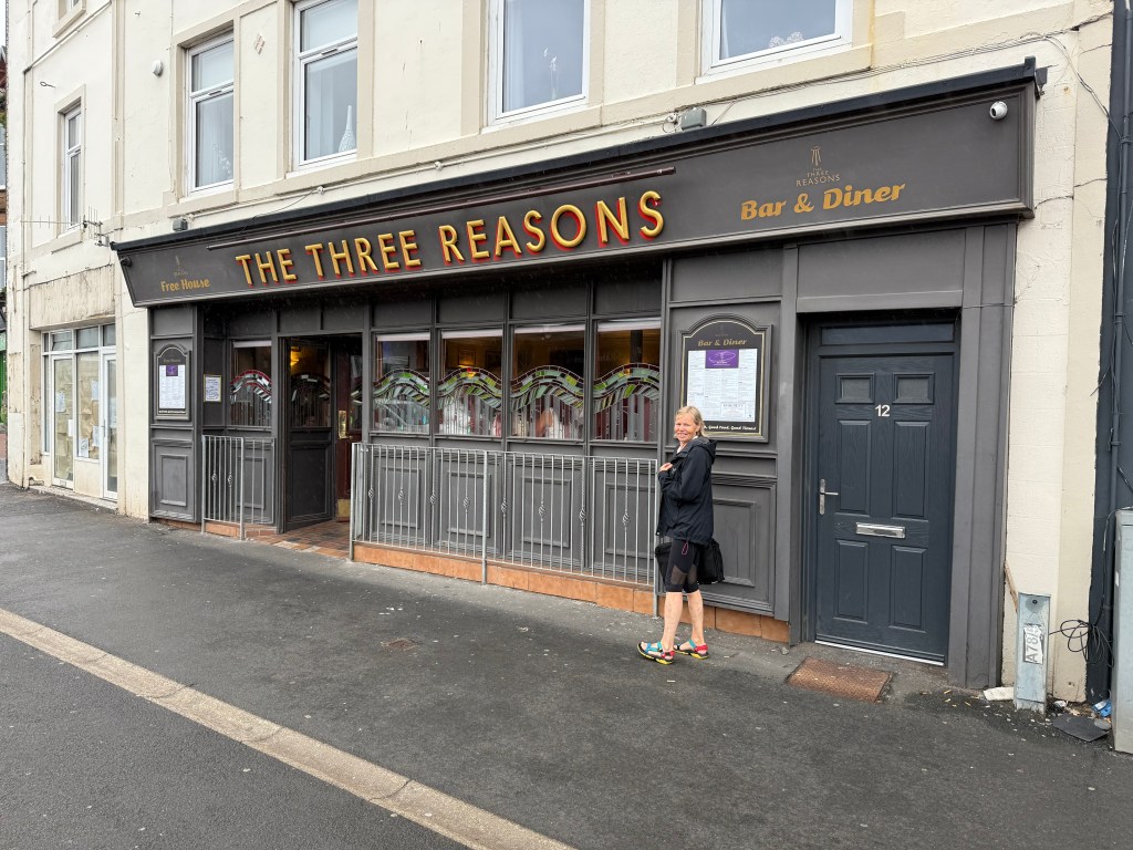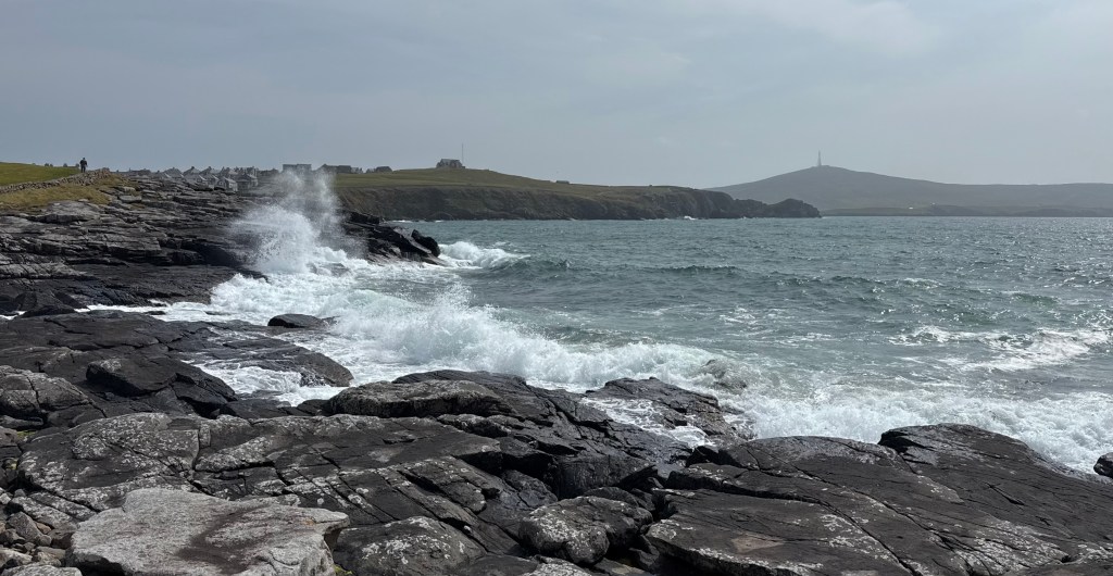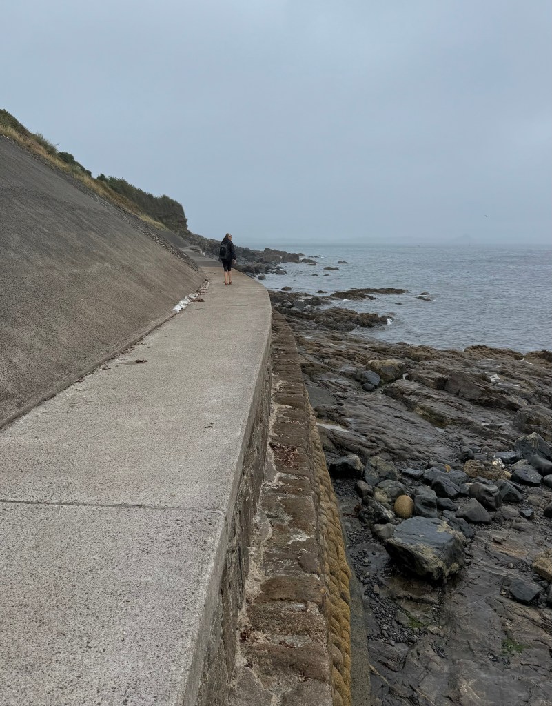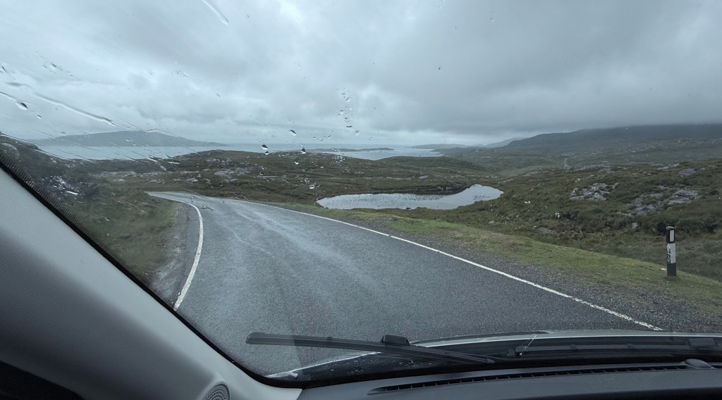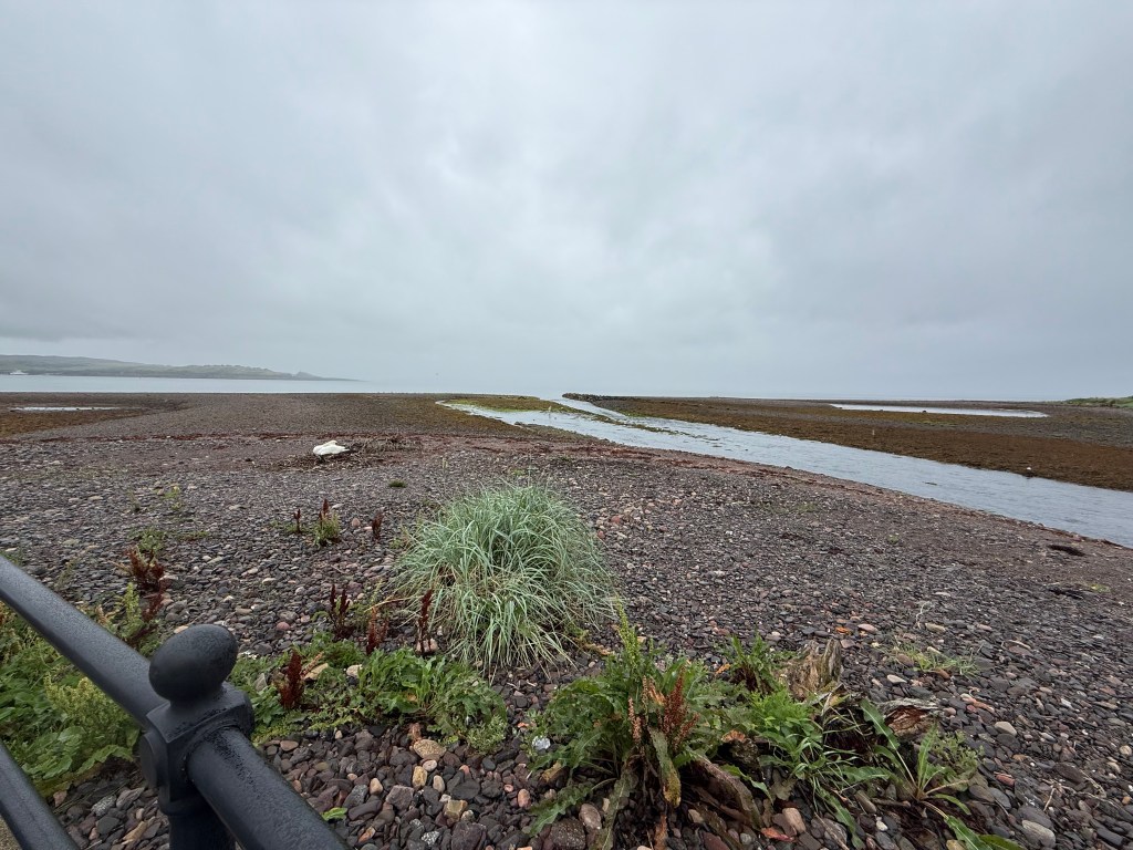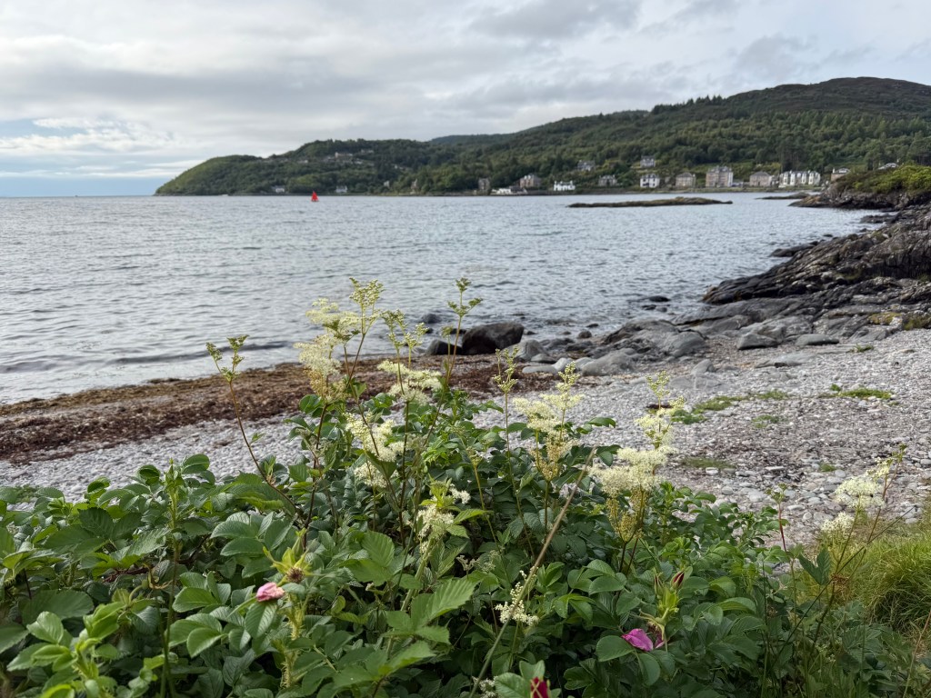 Vi hann inte ”hem” innan regnet trevande började falla ned i nästan horisontell riktning. Värmen av vår långa promenad lockade till ett snabbt morgondopp, trots regn och blåst.