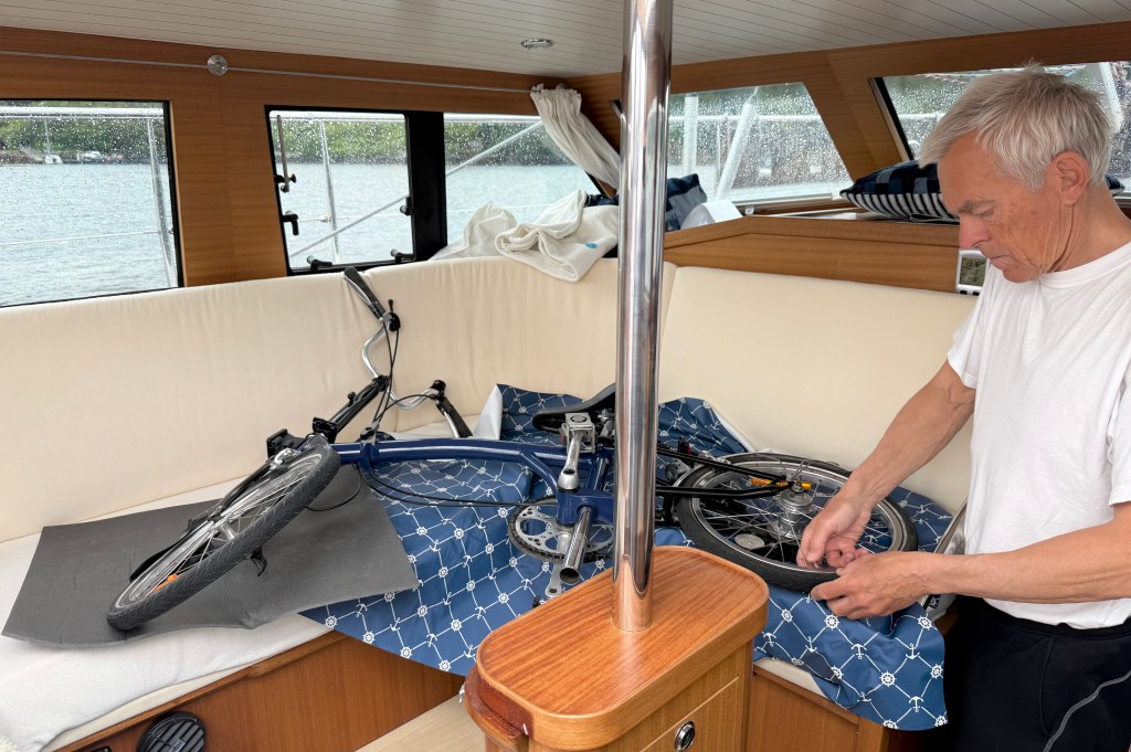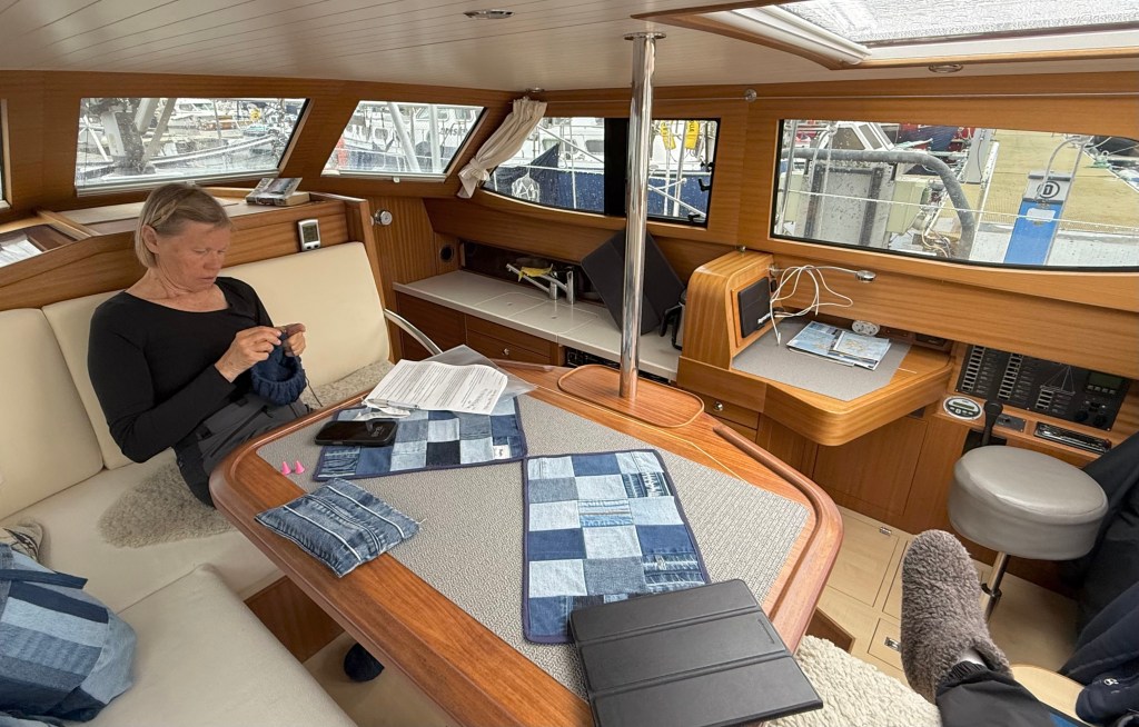 Denna ”lediga” dag börjar med frukost, storstädning, omstuvning av saker samt lite skruvande och mekande. Och kan ni tänka er, ni kommer inte att tro det är sant, kortbyxor på! Visserligen tröja och täckjacka, men wow. Så länge solen skiner och vi kan vara i lä för vinden…