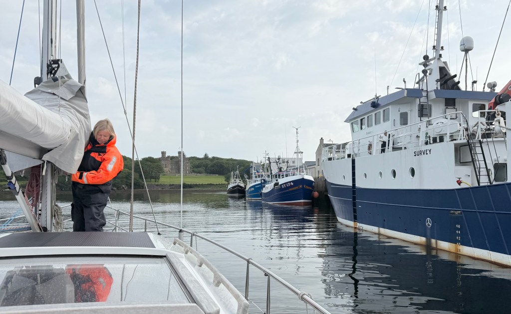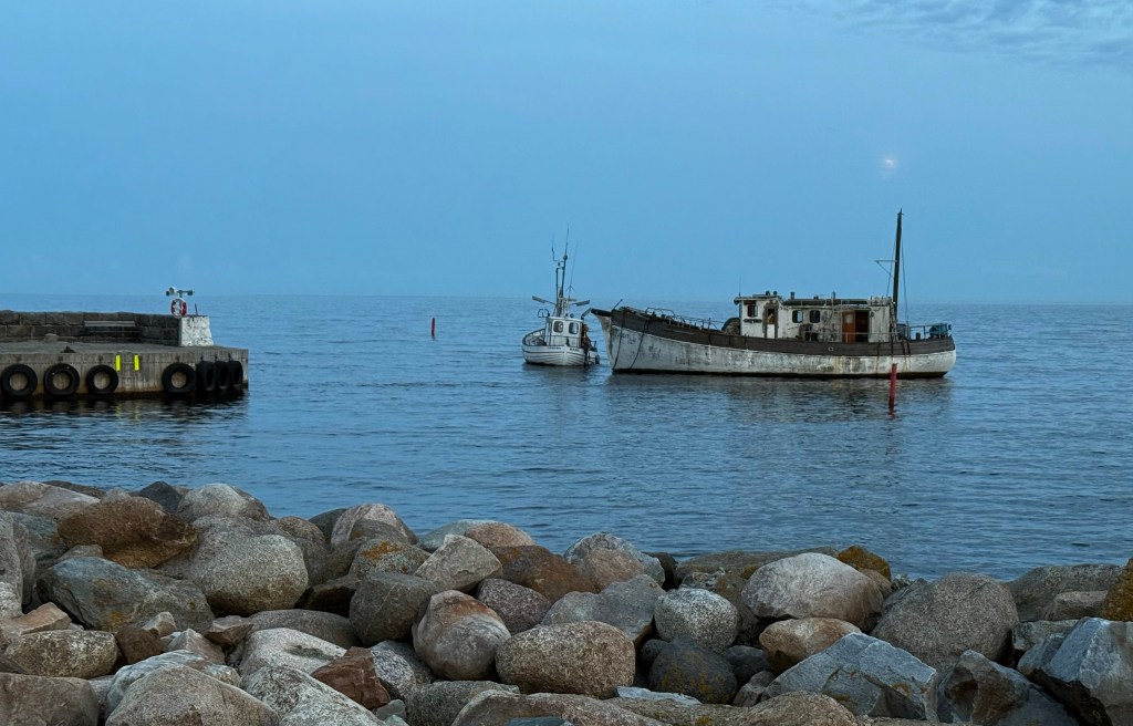En svag vind sveper över den tysta hamnen. Kibben är redan vaken då undertecknad slår upp ögonen. Dags att stiga upp och möta en ny seglingsdag. Det hoppas vi på trots SMHI:s ”motorbåtsvänliga” väderprognos… På kajen träffar vi en fiskargubbe, med grå skepparkrans, som ska tömma sin lilla öppna, överbelamrade fiskebåt. Han berättade att fisket för hans del, i stort sett är över på grund av brist på fisk.