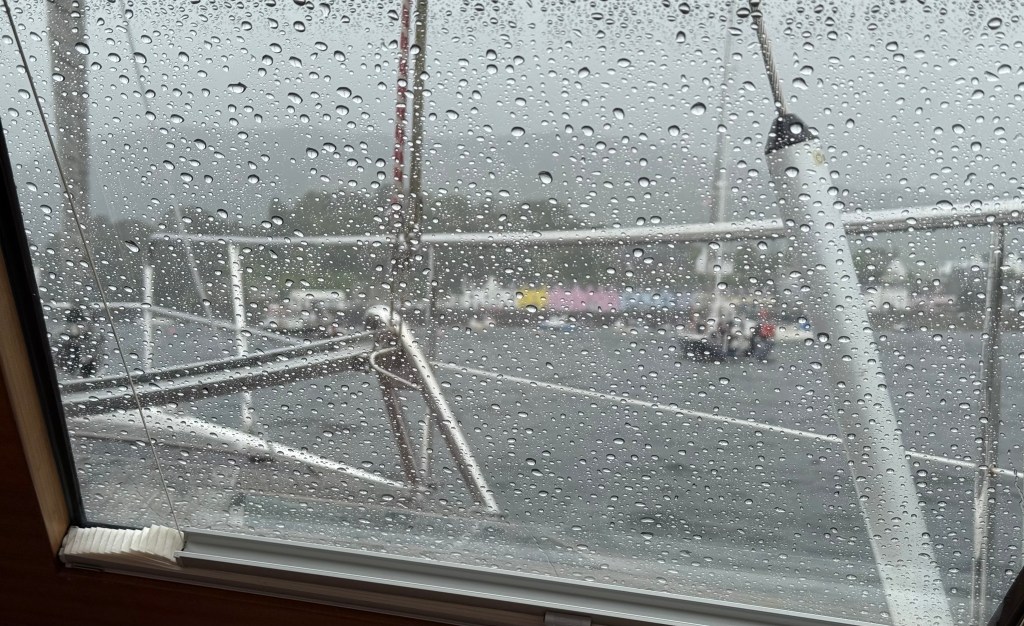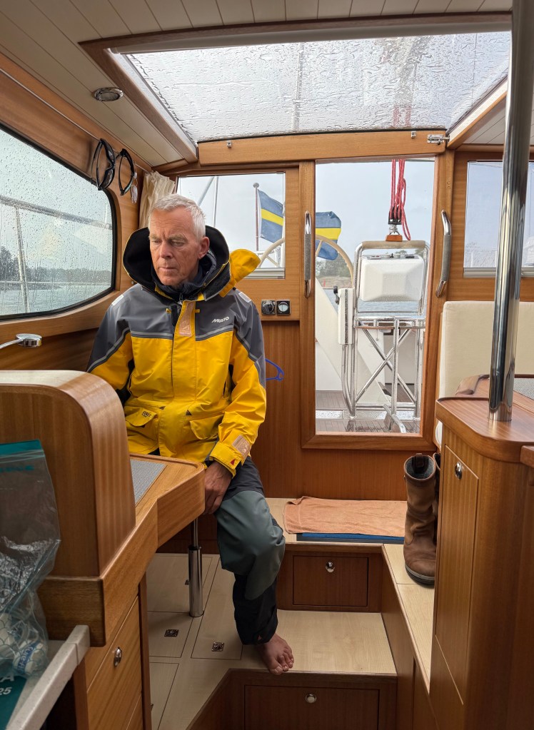 Ett glest och troligen iskallt morgonregn ger oss lugnet att softa i sovrummet… känns lyxigt… ingen brådska. Konstaterar att kupévärmaren gjort sitt jobb i natt…