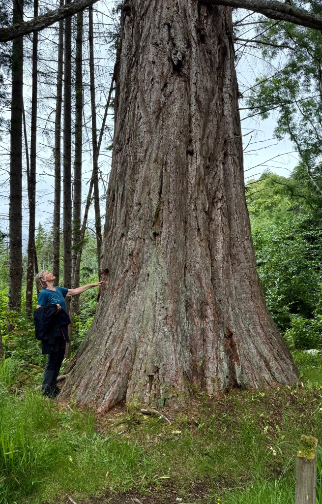 Går en bit längs vägen och viker av mot Ytterby, en koloni av hus. Vinden når endast trädens toppar och vi har det bra på marknivån. Härliga skog…