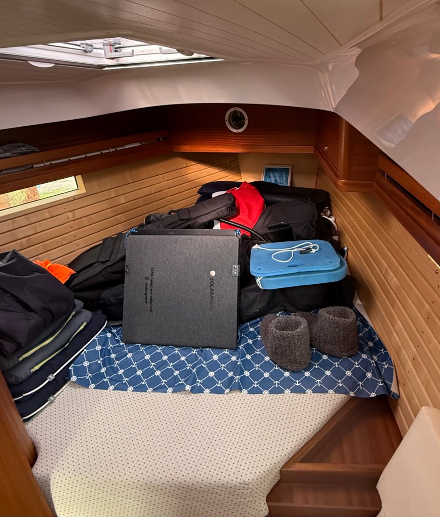 Dessutom nyare nödraketer (krav från försäkringsbolaget), utökad försäkring för båten och oss själva, ompackad livbåt, sjökort, hamnböcker, solceller, extra reservdelar mm mm.