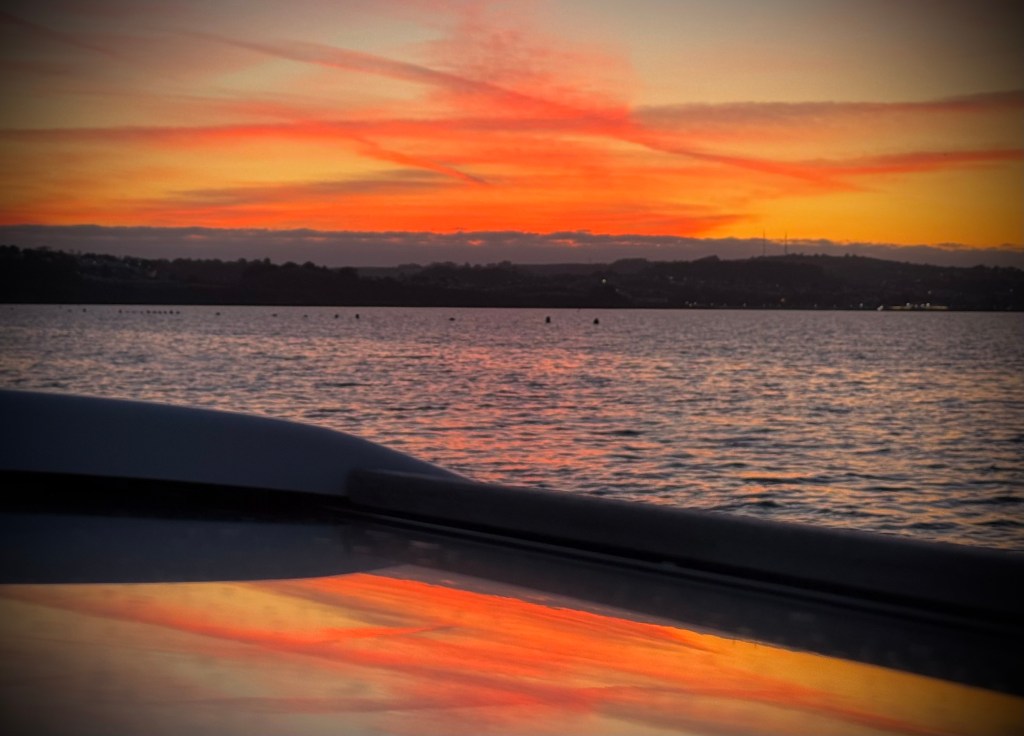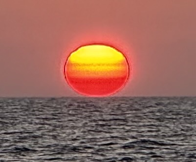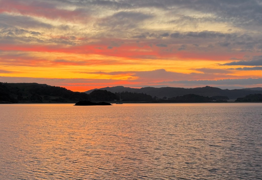 Först: Måndag kväll på svaj. Solljuset blir en aning extra rödtonat via mobilen. Men inte mycket. Det blev återigen en fantastisk solnedgång.