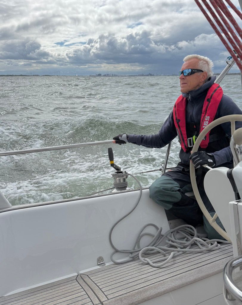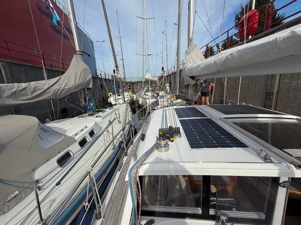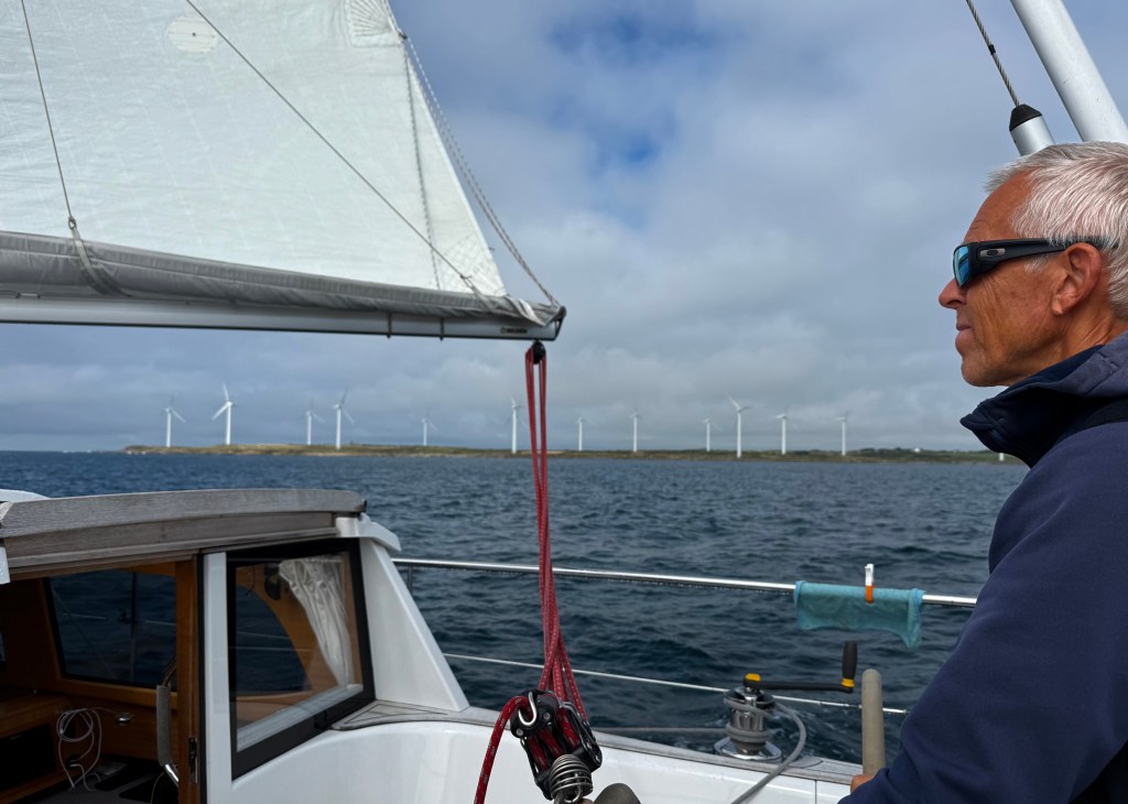 Därefter sade holländaren: ” it`s first time for me”. Vet inte vad som var första gången men allt gick väl och vi är glada att vi var ombord. Placerar ännu en fendert i lovart…