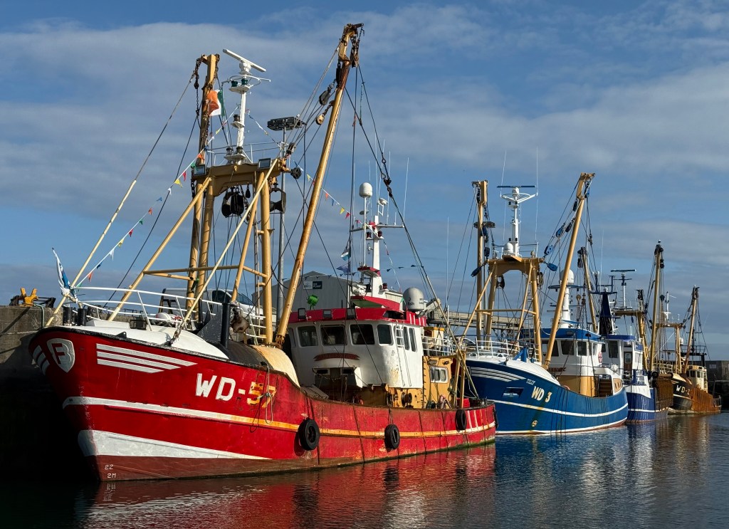 Fyra tyska grannar i den stilla hamnen. Minsta båten en ”Späckhuggare”.