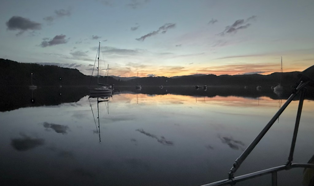 Mörkret smyger på, tidigare och tidigare, vilket medför tidigare läggdags. Speciellt när vi ligger på svaj och inte har landkontakt. Men det är befriande skönt att vara isolerad ibland…