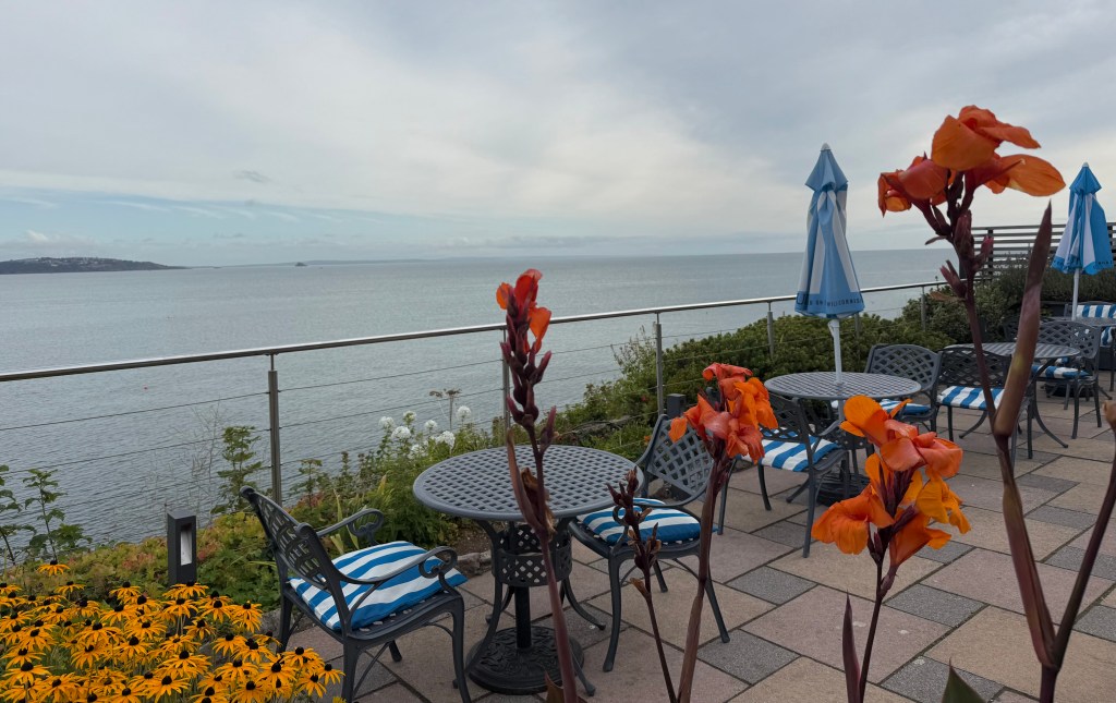 Frukosten smakade extra bra idag, där vi satt i vår lilla ”glasbubbla” och såg ut i regnet som ökade hela tiden.