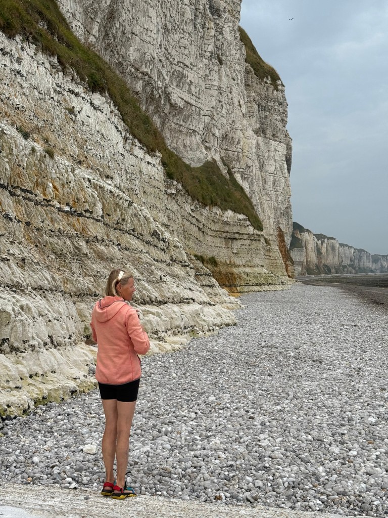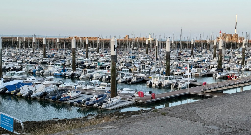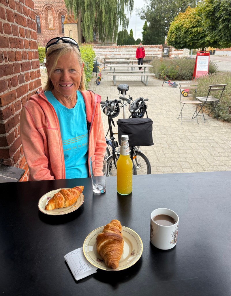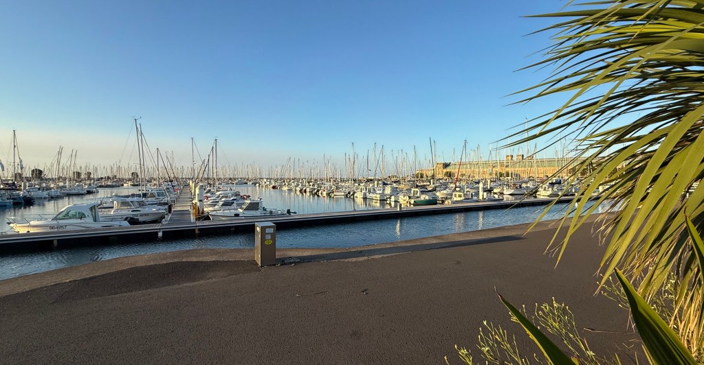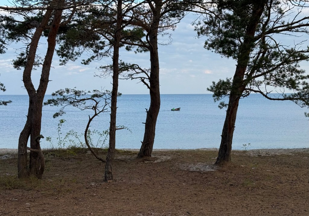 Morgonpromenaden tar oss till stranden. Fiskaren i den lilla båten, som vi träffade senare, har fångat en tjugotal rödspättor som han säljer eller ger bort. De är små. Svårt att förstå honom när han envisades med att ha en pipa i munnen. Hela tiden…