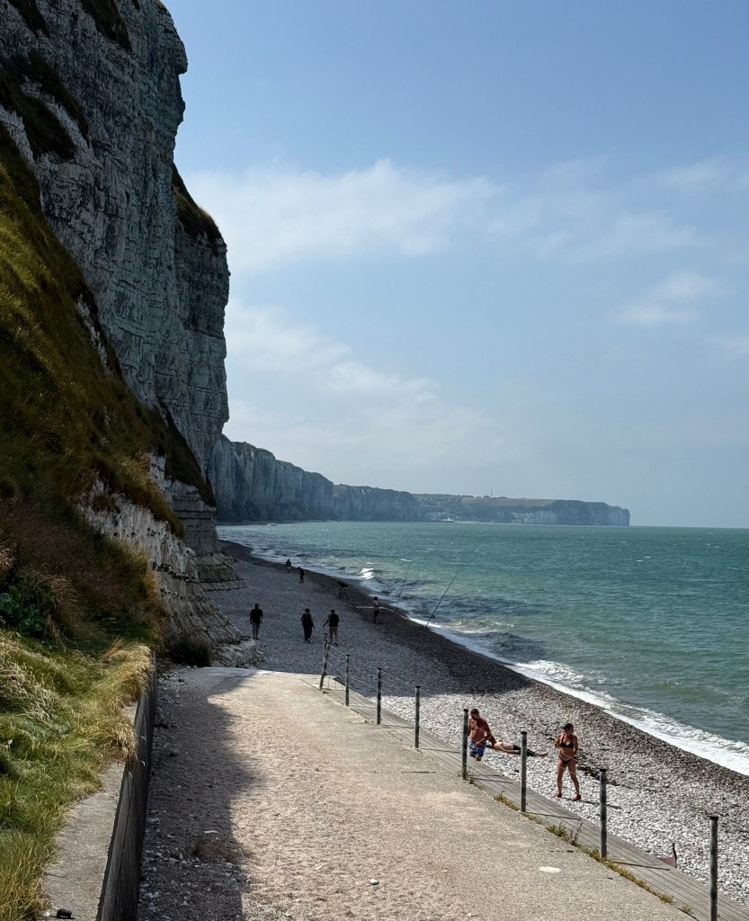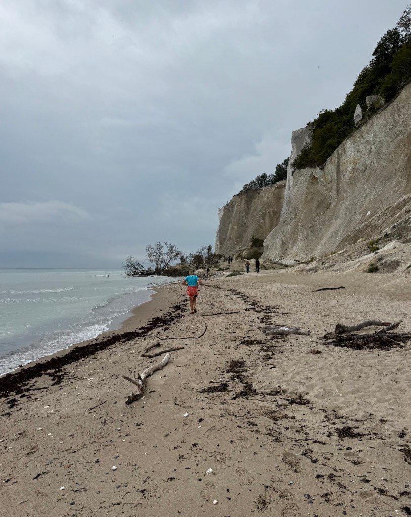 Bland sand- och stenstränderna ligger stora kalkstenshällar.