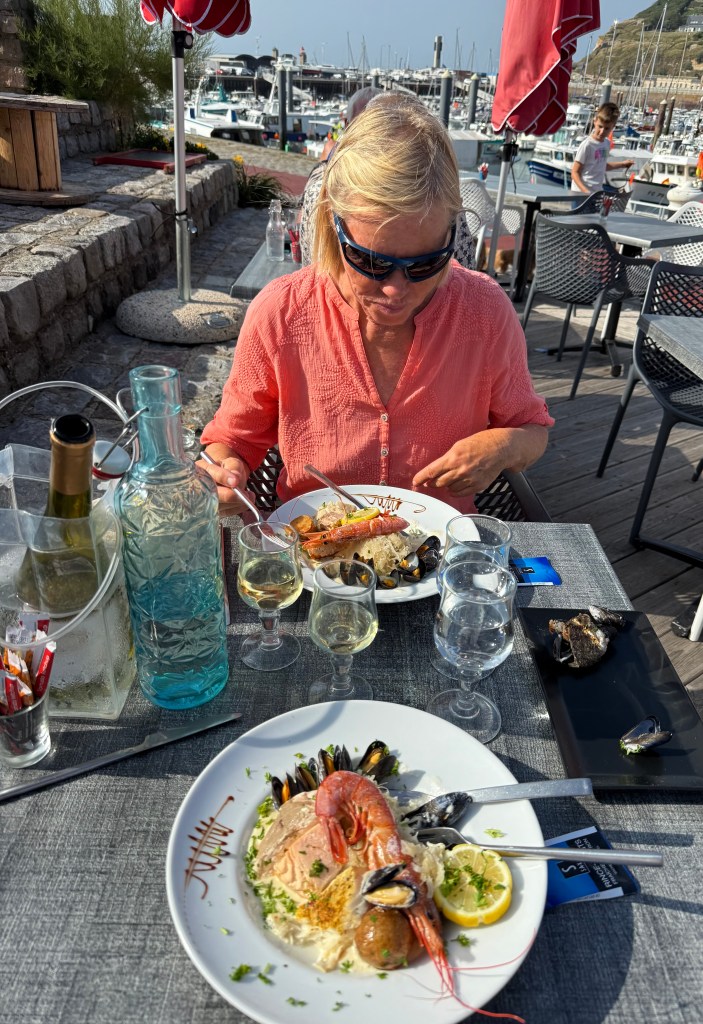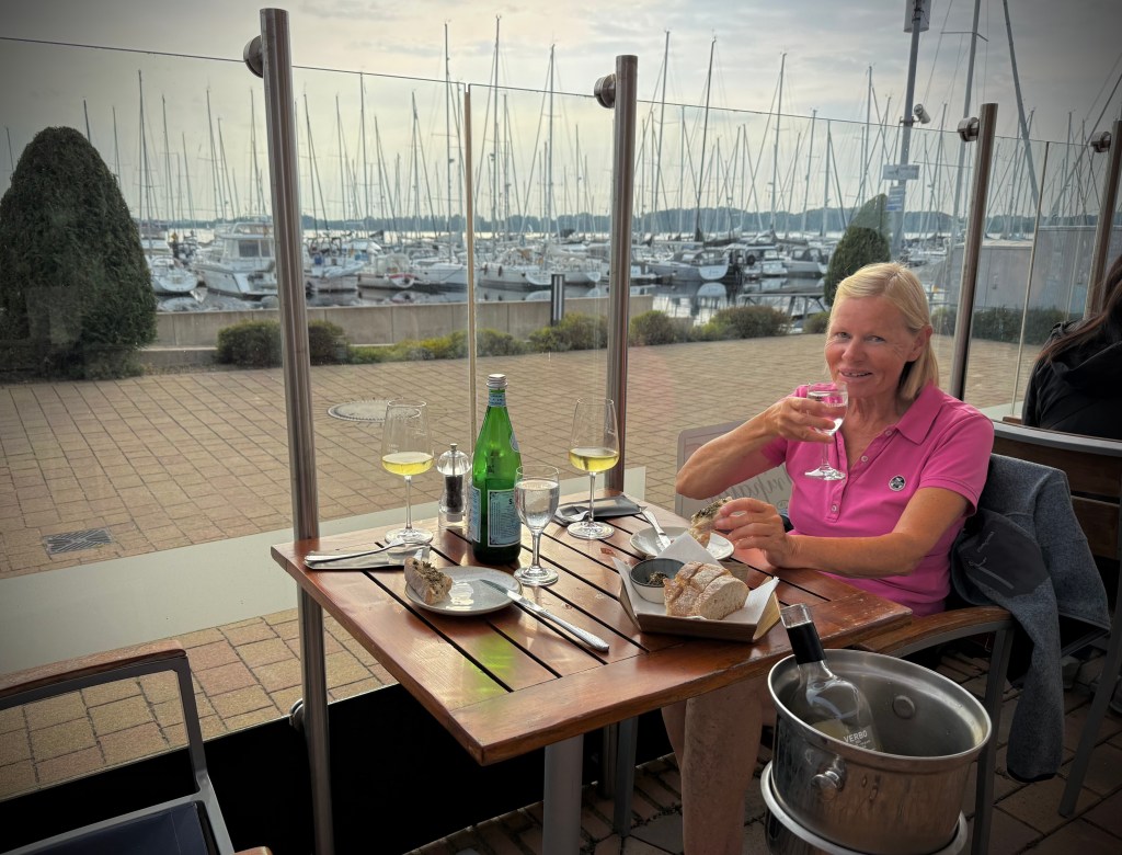 Att anlända till en gästhamn innebär ett utflöde av pengar, i alla möjliga riktningar. Vi shoppar loss och handlar mat för tiden framåt. Just nu laddar vi för buffén med varsitt glas rosévin i salongen… det är ju lördag…
