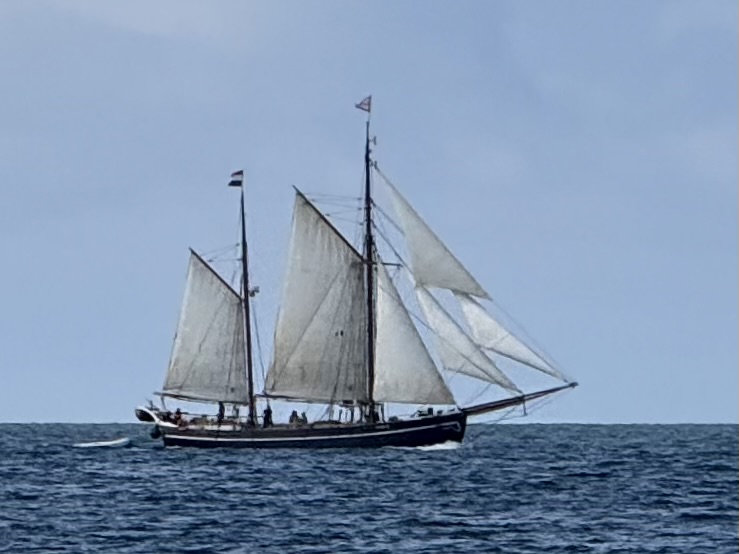 Precis i första skålen, kommer en holländsk Gibb Sea 33 in lovart om oss. Han hade inte flaggan satt (troligen inför tilläggningen) och vi antog att det var ännu en av de tyska seglare som ska segla i vår oerhört fina skärgård… Och tyskar är mycket vänliga. De tar gärna och hjälper till då vi exempelvis kommer in i någon gästhamn. Oavsett behov eller inte. Därför stoppade vi skålen och Rorsman gick ut på bryggan för att ta emot båten som seglades av en ensam HOLLÄNDARE… (de är ju duktiga).
