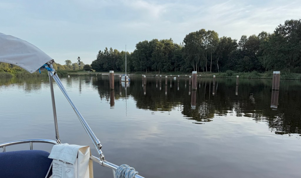 Den arla morgonen var kall och stilla. Fåglarna hade redan börjat sjunga för oss. Även göken, som vi hörde redan igår. Lämnar hamnens två sovande segelbåtar och ger oss ut på ännu en lång etapp.