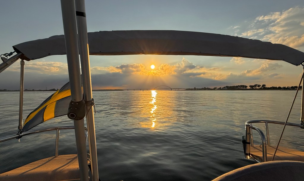 Solen hade redan börjat sin bana över himlen innan vi med motorns hjälp tog oss genom grundområdet och riktade stäven mot Borgholm på Öland.