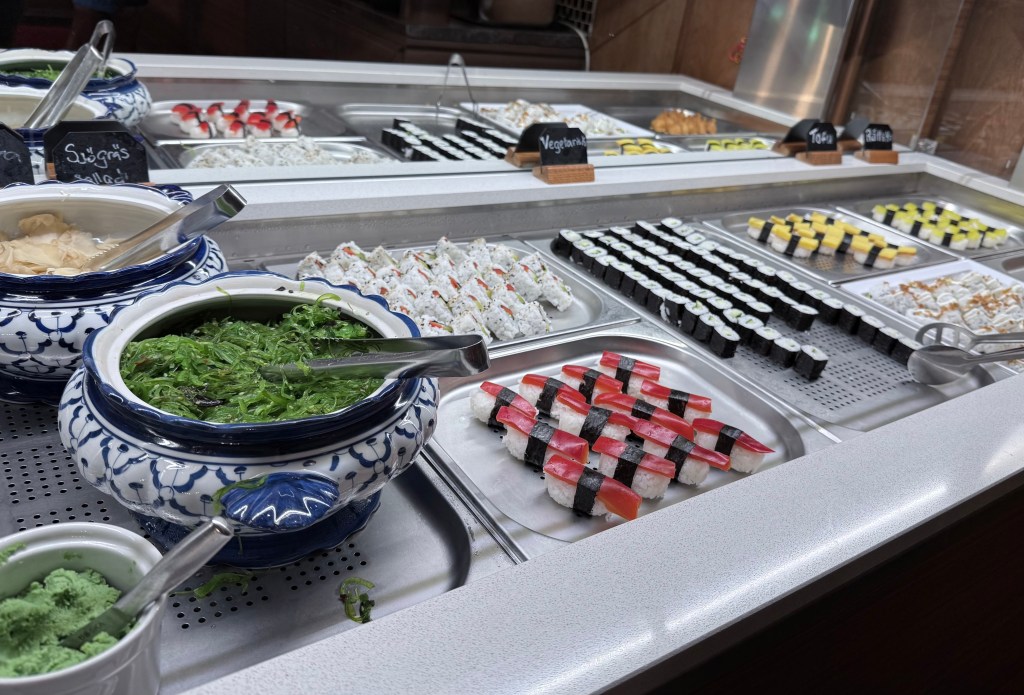 Efter att pulsen återtagit normalfart gick vi runt i stan och hamnade så småningom på Thai Silk restaurangen. Obegränsat med sushi att börja med. Därefter ett smaskigt frossande på buffén… oj, oj, oj…